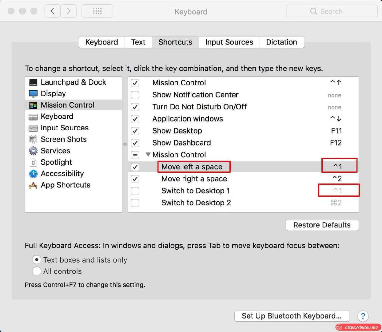 1. 设置选项里可以将切换快捷键(Mission Control)设置为其他组合键,如 Ctrl + 1 。但是如果其他快捷键设置过同样的组合键,即使没有激活,也会导致左切换快捷键失效(Move left a space),神奇的是右切换不受影响。